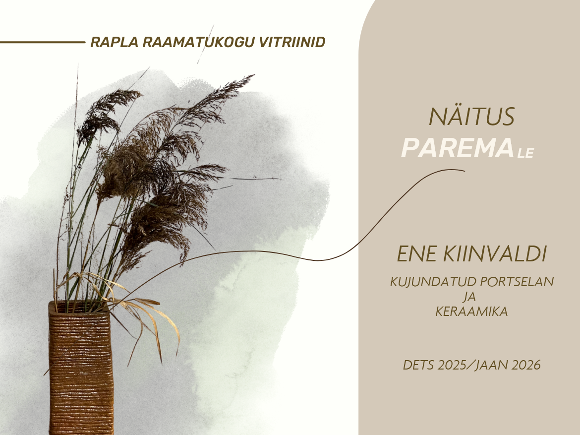“Talvepeegeldusi” – laenutusosakonnas; “Rohelises on rahu” – laenutusosakonna vitriinis; “Viive Noor 70” – lastealal; “J nagu jõulud” – lugemissaalis; Muud väljapanekud: “Jõulumeeleolu läbi aegade” – jõuluehteid ja -kaarte lasteala vitriinis