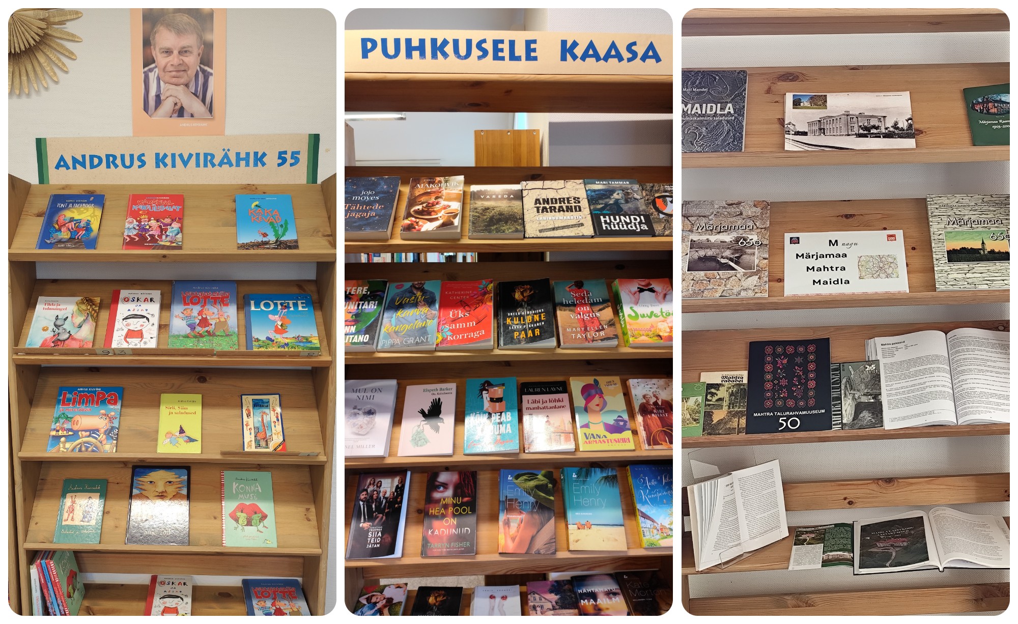 Puhkusele kaasa – laenutusosakonnas; Vali punane [sari “Punane raamat”] – laenutusosakonna vitriinis; Andrus Kivirähk 55 – lastealal; Aino Perviku mälestusnäitus – lastealal; M nagu Märjamaa, Mahtra, Maidla – lugemissaalis; ——————————————————————-…